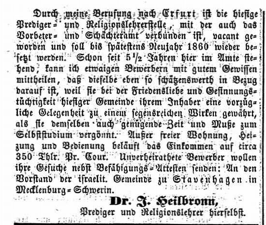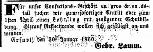 Erfurt, den 30. Januar 1860. Gebr. Lamm." |
