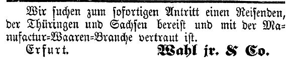 "Wir suchen zum sofortigen Antritt einen reisenden, der Thüringen
