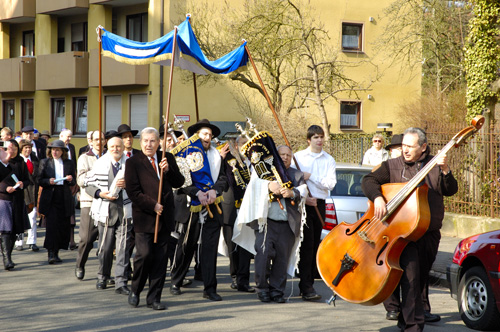 Prozession von etwa 500 Teilnehmern, die vom Rathaus zum neuen Domizil führte,