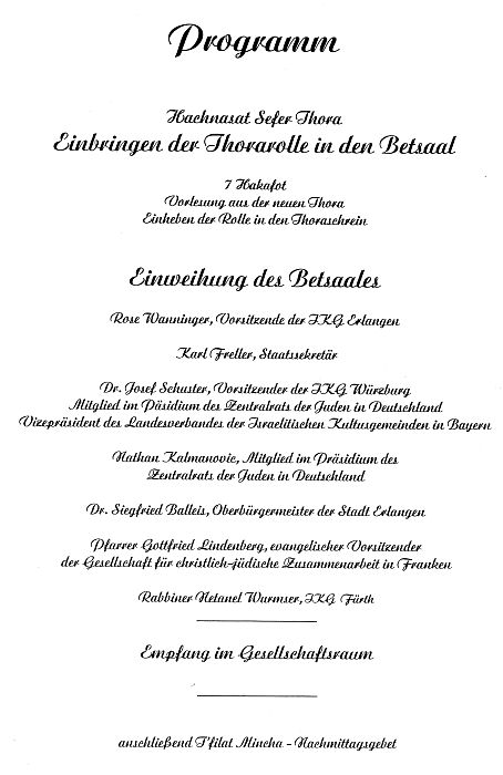 vorangetragen und später in den Betsaal gebracht. Die jüdische Gemeinde in Erlangen
