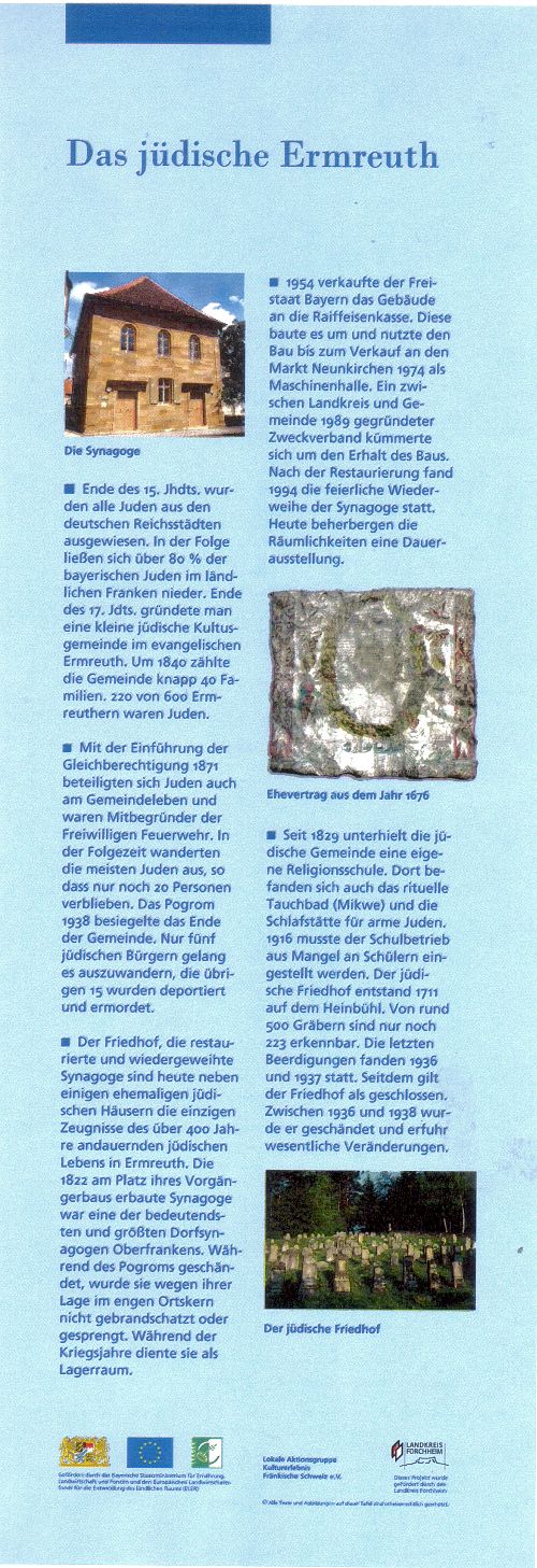 In Ermreuth bestand eine jüdische Gemeinde bis 1938. Ihre
