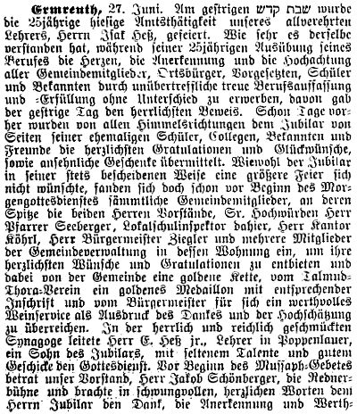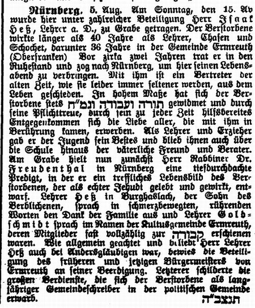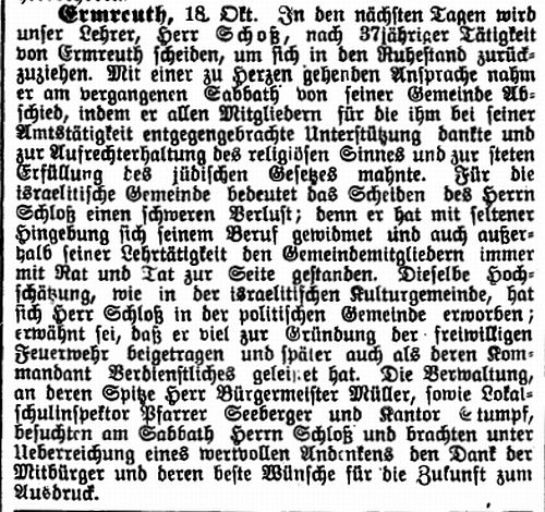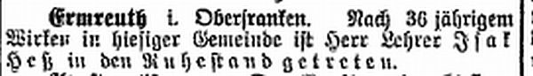 Ermreuth dem Rabbinatsbezirk Bamberg zugeteilt.