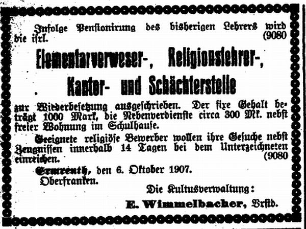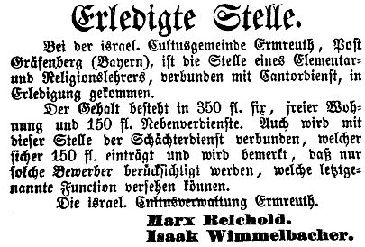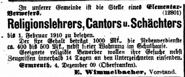 Bei der Besetzung des dortigen Rabbinates traten die Ermreuther teilweise sehr