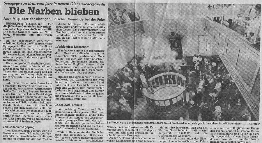 Synagoge kostete Gemeinde 12000 Gulden. Artikel in den "Erlanger