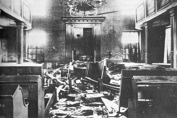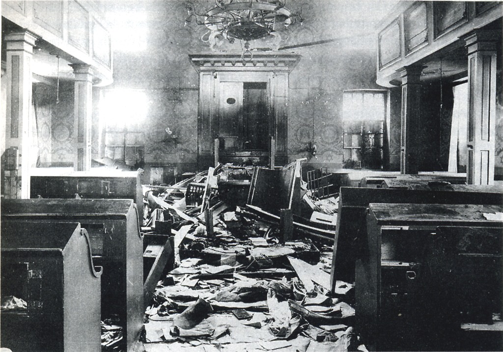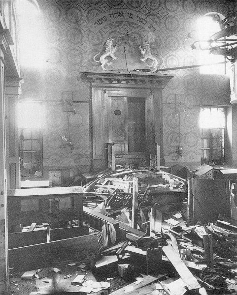 SA troops destroyed the synagogue's interior; a mob looted and vandalized Jewish
