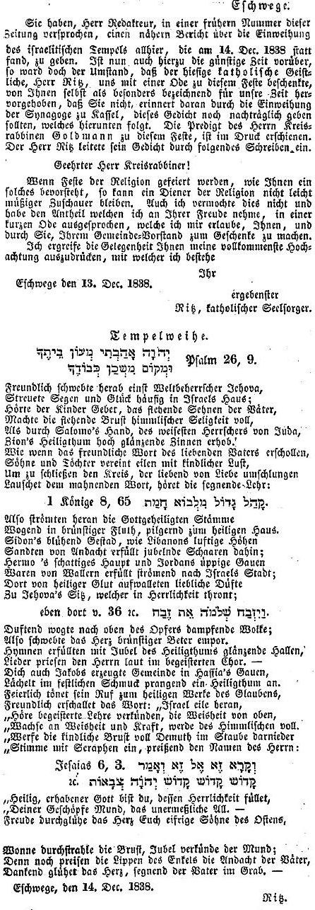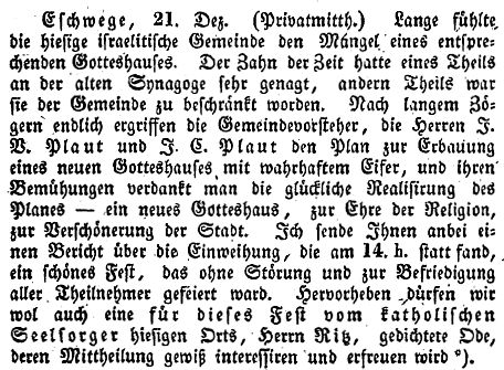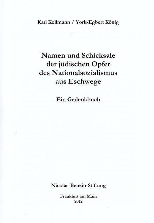 im Zusammenhang mit Verfolgungen gegen die jüdische Bevölkerung auch Eschwege