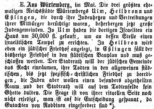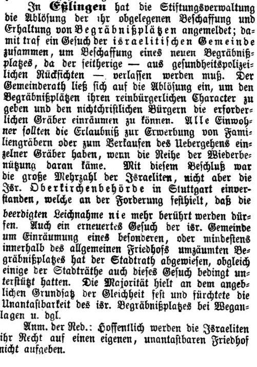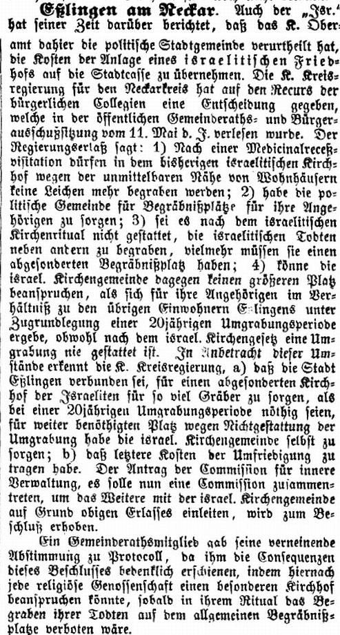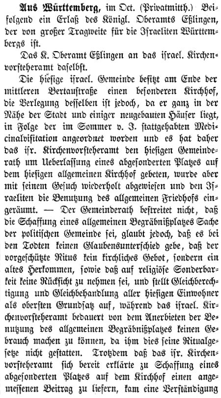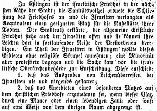 städtischen Behörden, die einen separaten jüdischen Friedhof nicht genehmigen