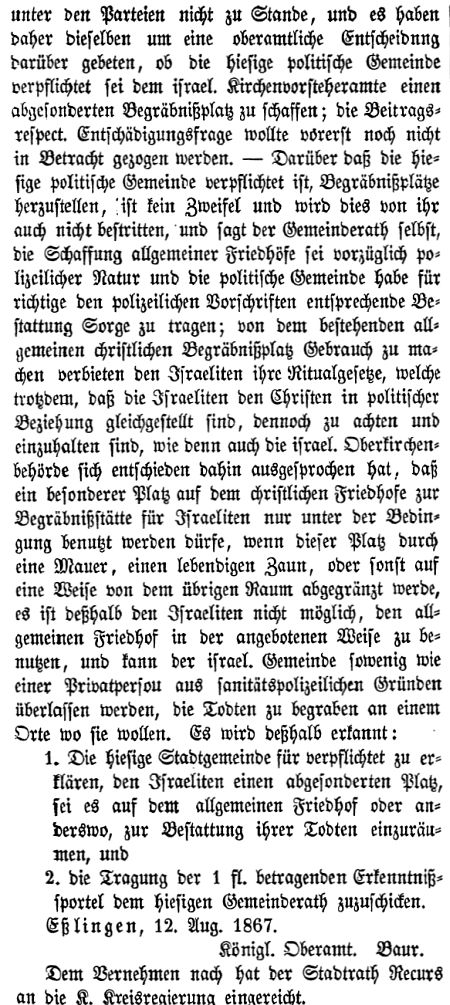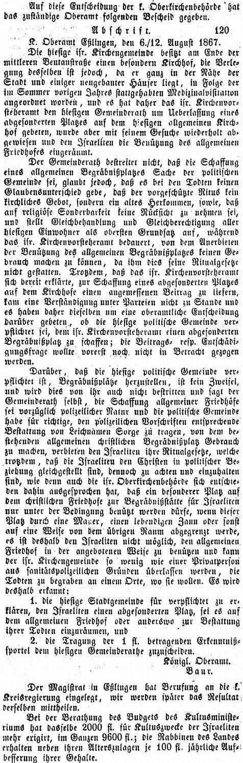wollten. Erst die Beschlüsse des Oberamt (1867) sowie der Kreisregierung