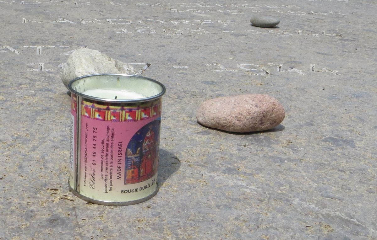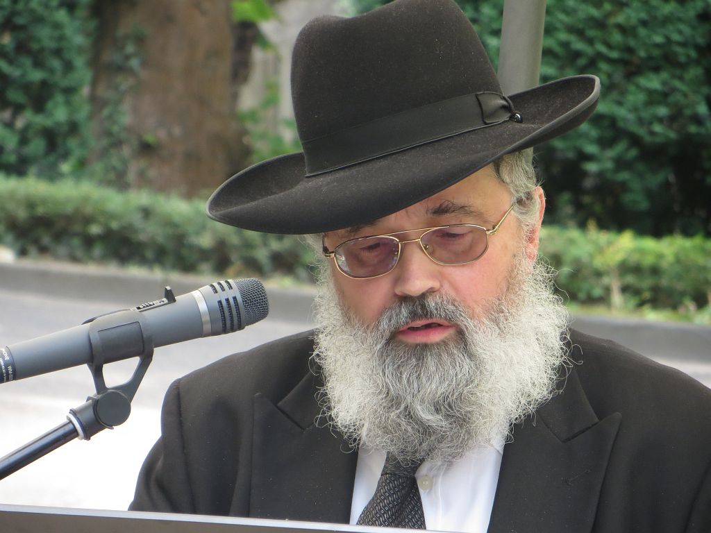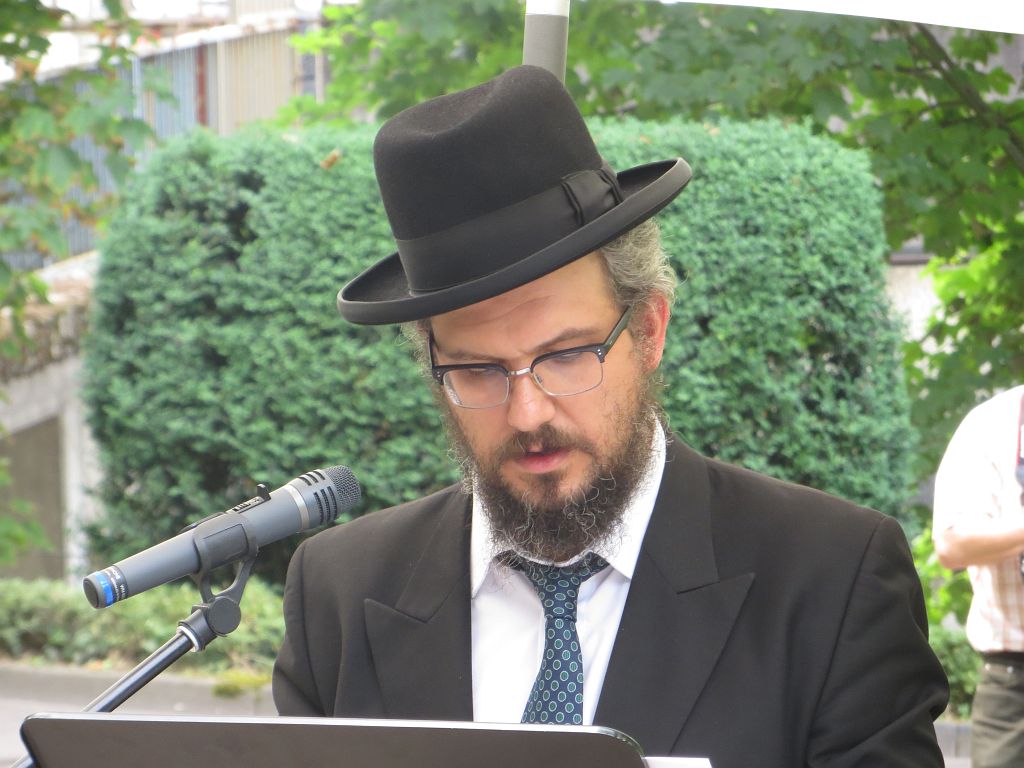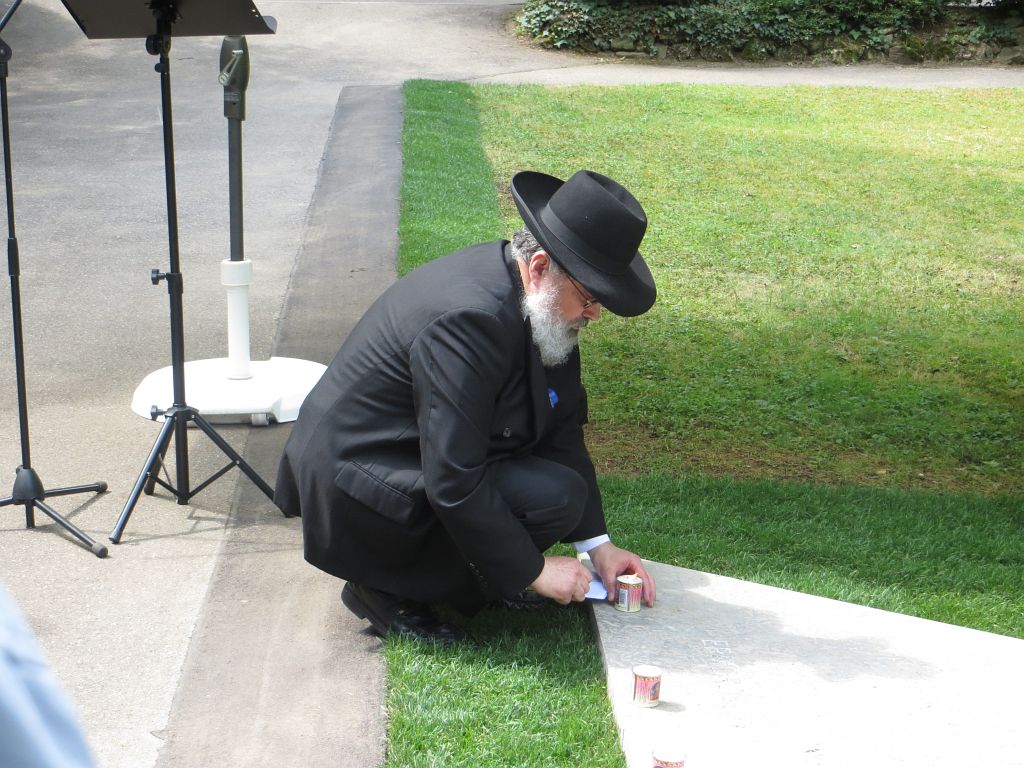 der Gedenkkerzen durch Rabbiner Puschkin mit Gemeindeglied