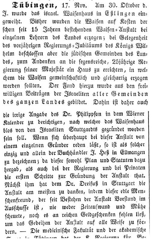Herkunft in Esslingen bei Stuttgart beim ehemaligen jüdischen Waisenhaus