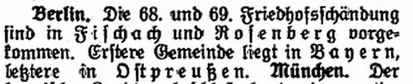 "Berlin. Die 68. und 69. Friedhofschändung (sc. seit 1923 in