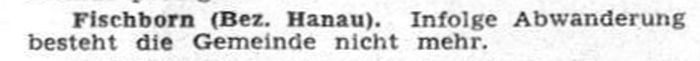 1933 lebten noch 20 jüdische Personen in Fischborn. In
