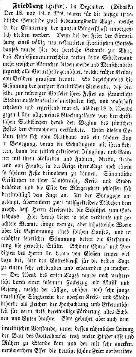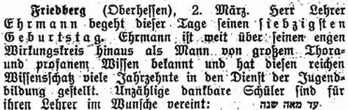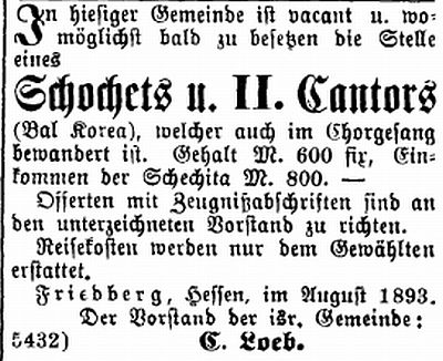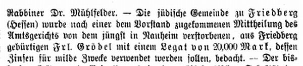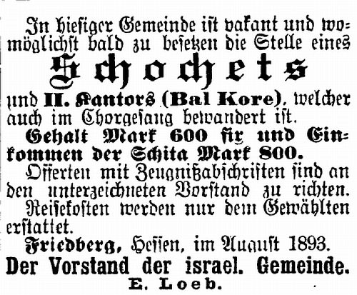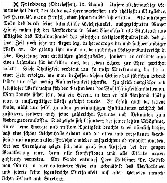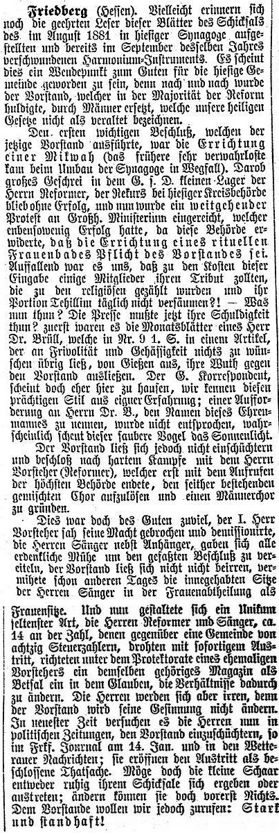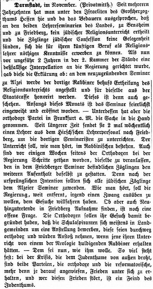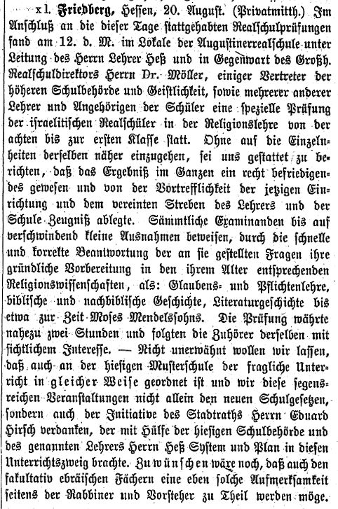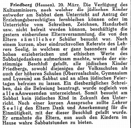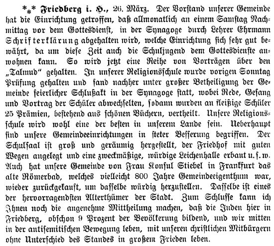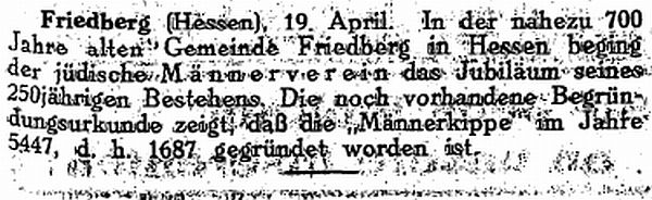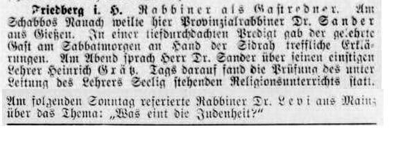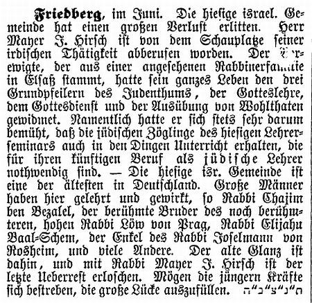 Rabbinat in Friedberg hatten dieselbe Bedeutung wie diejenigen in Frankfurt,
