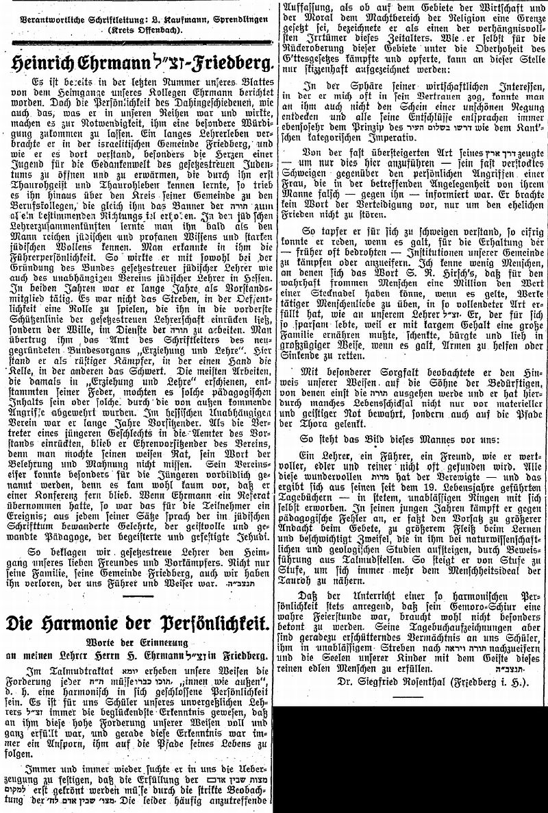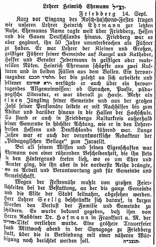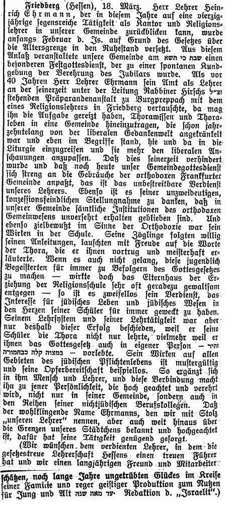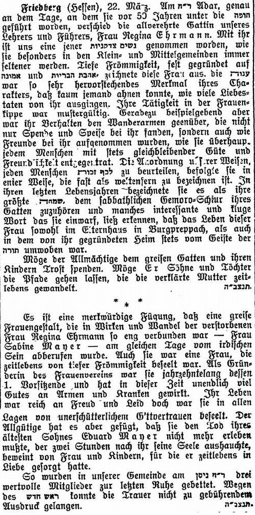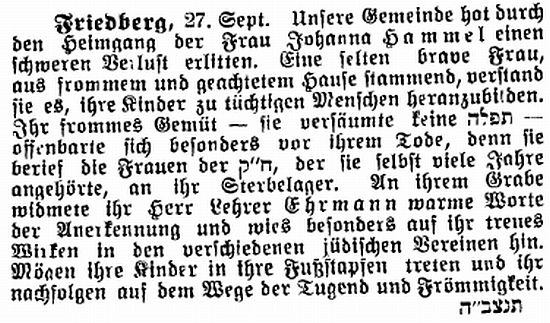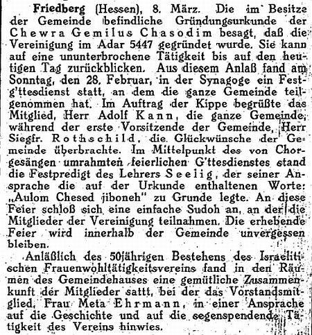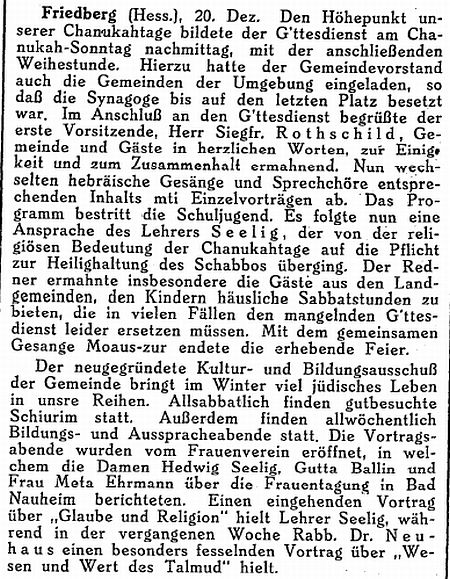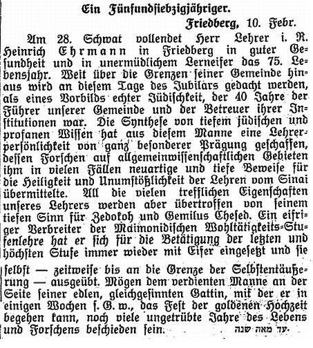 Rabbinat in Friedberg hatten dieselbe Bedeutung wie diejenigen in Frankfurt,