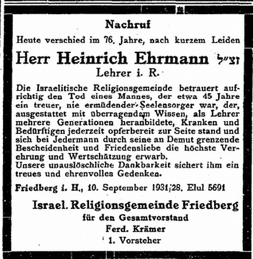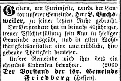 Tod ist das Rabbinat Friedberg erloschen. Die jüdische Gemeinde wurde 1842 dem