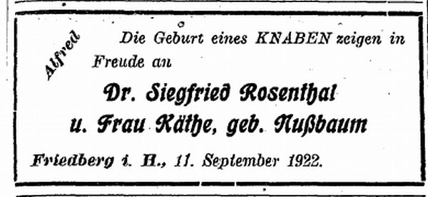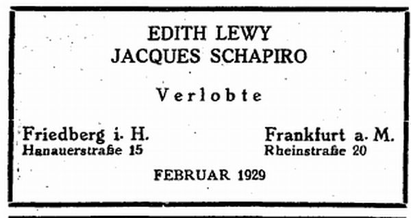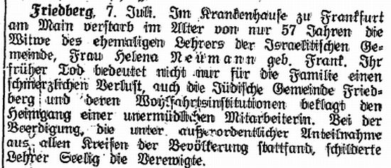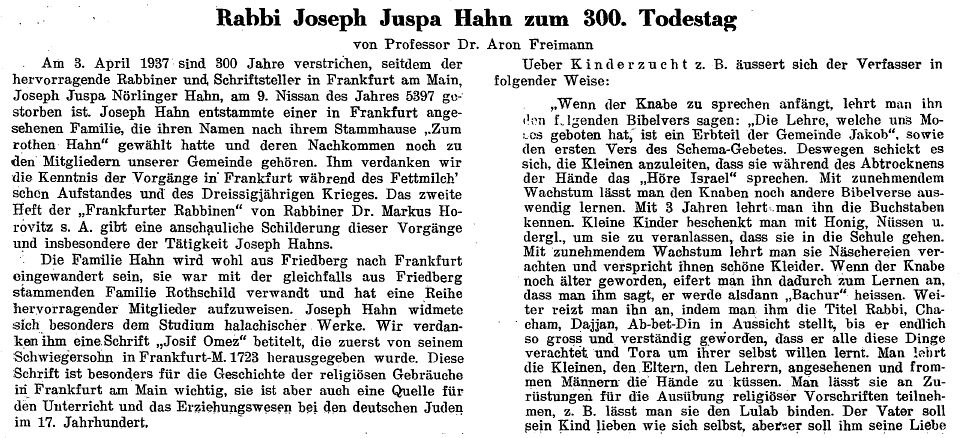 Frankfurt; Familie nannte sich später Hahn, siehe unten Bericht über Joseph