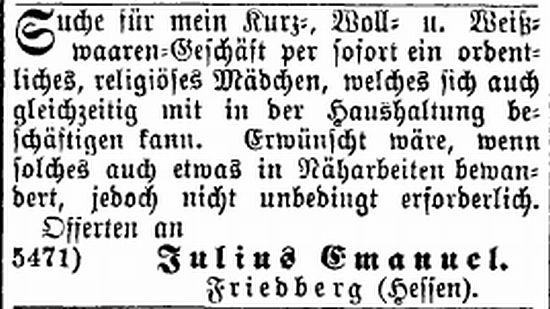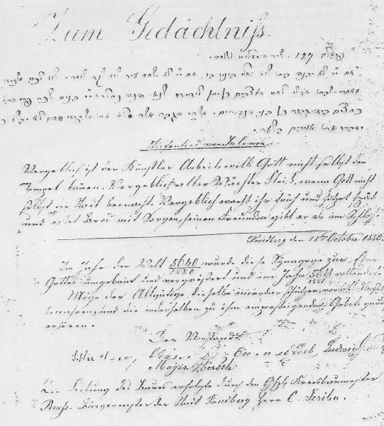 folgt: 1861 363 jüdische Einwohner (7,7 % von insgesamt 4.691), 1880 438