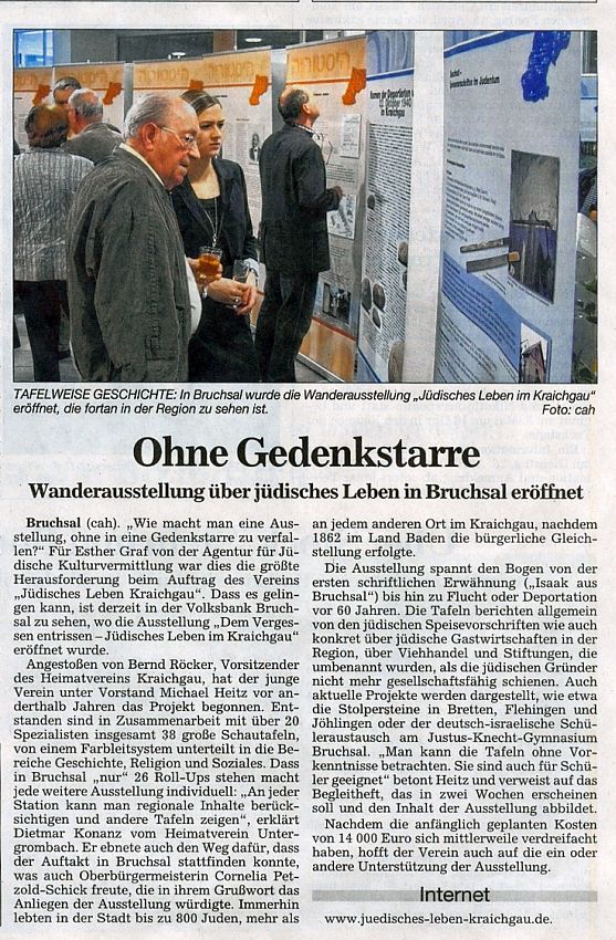 Eröffnung der Ausstellung in Bruchsal - Weitere Presseartikel und einige Fotos