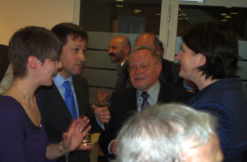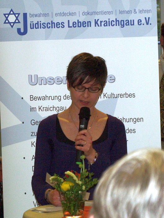 Bruchsals Oberbürgermeisterin Cornelia Petzold-Schick im Gespräch mit Dr. Esther Graf (Agentur für jüdische Kulturvermittlung; Foto links), Michael Heitz vom "Verein jüdisches Leben im Kraichgau e.V." sowie mit Bernd Röcker vom "Heimatverein Kraichgau e.V." | |||