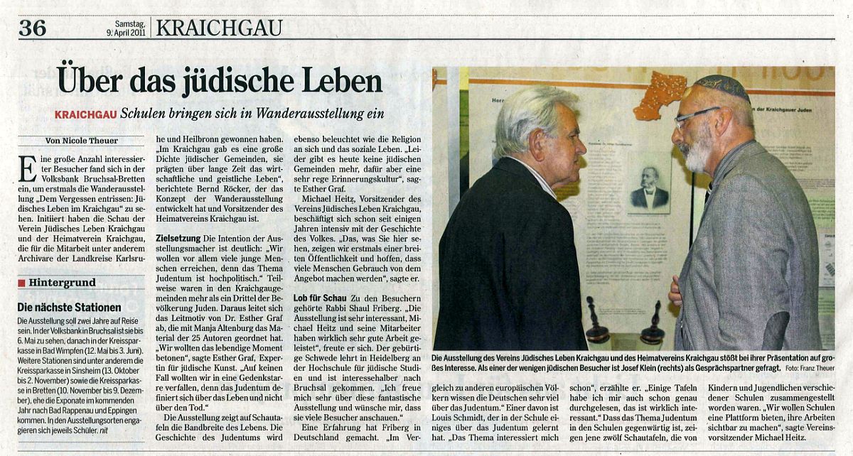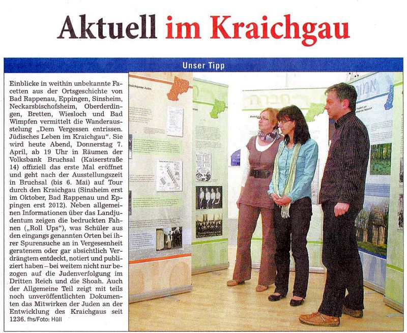 Die "Heilbronner Stimme" (Kraichgau) berichtete am 9. April 2011 über die Ausstellungseröffnung in Bruchsal (Artikel von Nicole Theuer):