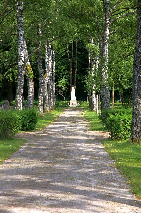 Friedhof mit Blick auf das Mahnmal, das "zum ewigen