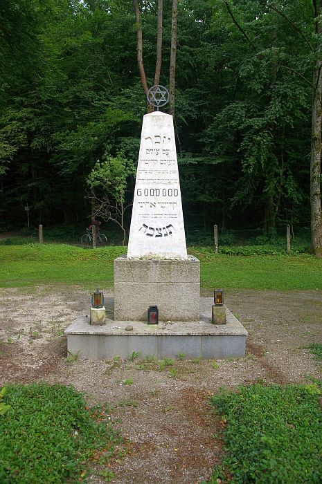 ist der Obelisk, dessen Inschrift an die sechs Millionen ermordeten Juden