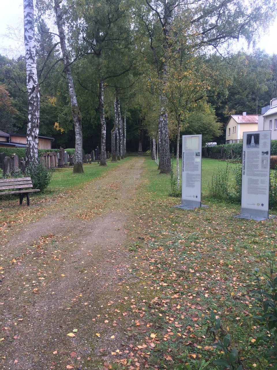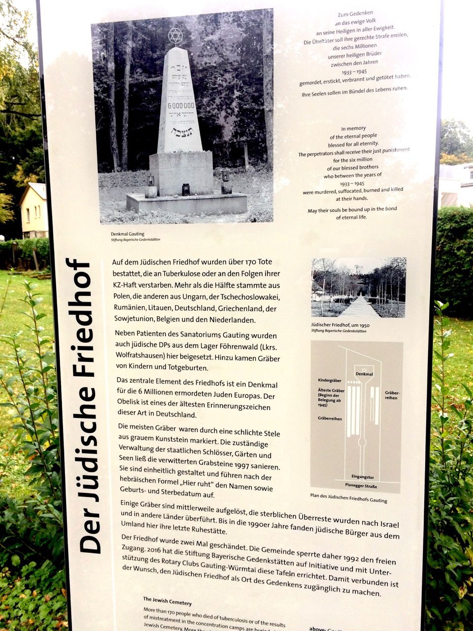 Oktober, Informationstafeln auf dem Jüdischen Friedhof in Gauting ein. Mit
