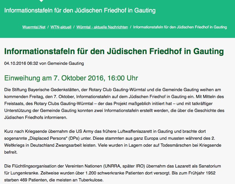 Jüdischen Friedhof Gauting an. Damit verbunden ist der Wunsch, den Jüdischen