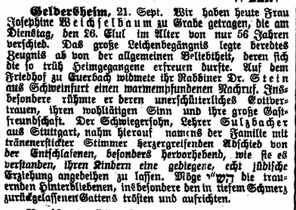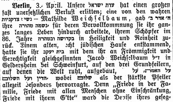 in der Zeitschrift "Der Israelit" vom 11. Dezember 1884: "Euerbach
