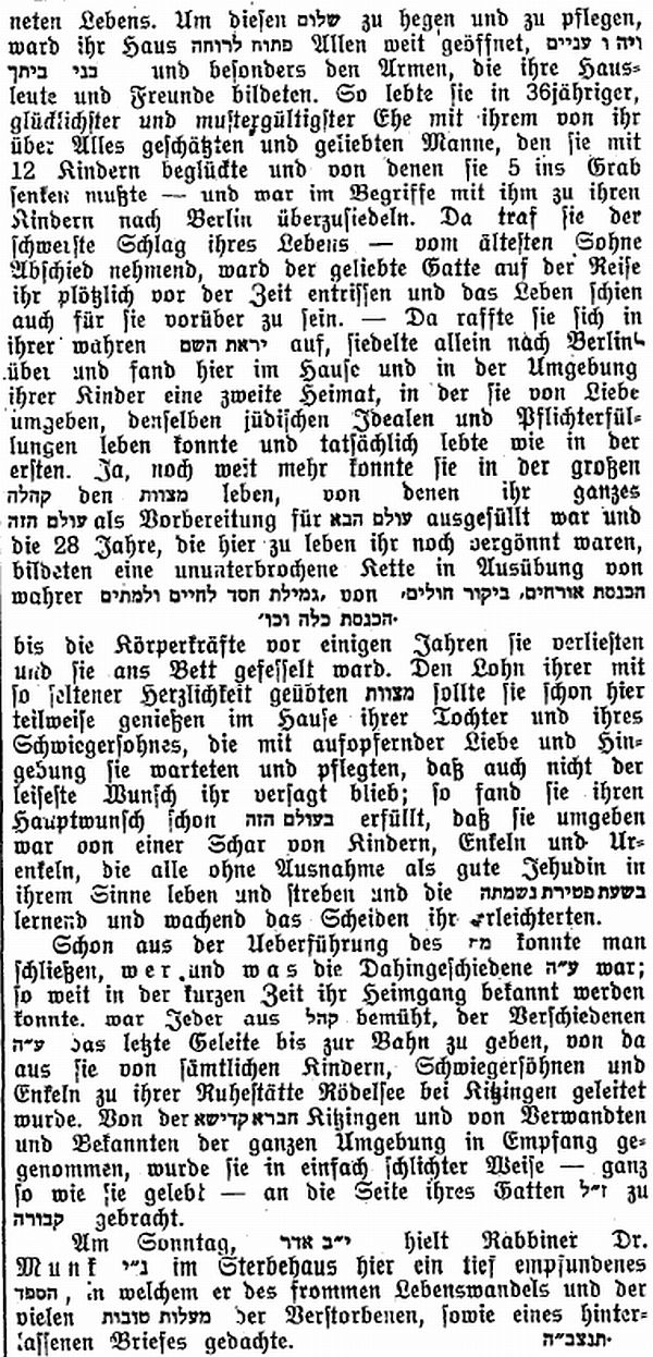1929) hielt Rabbiner Dr. Munk - sein Licht leuchte - im Sterbehaus