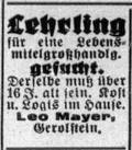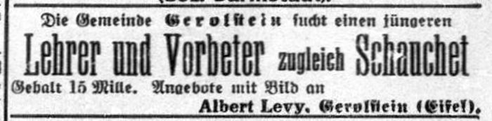 Stelle eines Lehrers, Vorbeters und Schochet war 1921 ausgeschrieben, allerdings