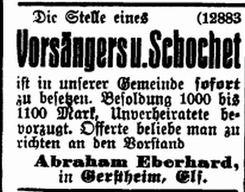 des Vorsängers und Schochet ausgeschrieben. Die Gemeinde