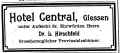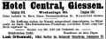 Anzeigen des Hotels Central in Gießen (1906 /1911)