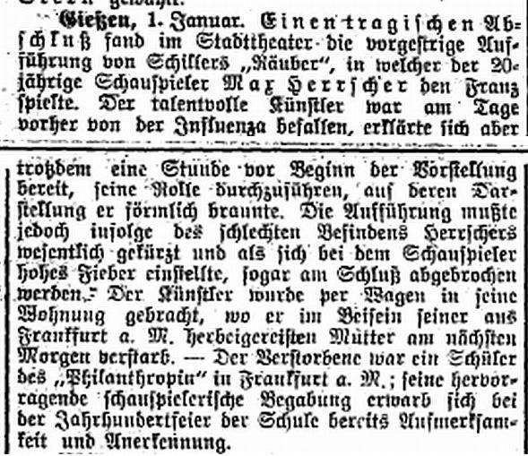 starb dahier die Frau des sowohl in hiesiger Stadt als auch in der