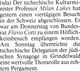 Flavio Cotti zu einem Höflichkeitsbesuch empfangen worden. Am Sonntag