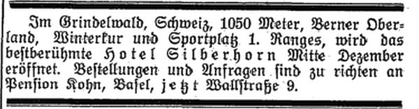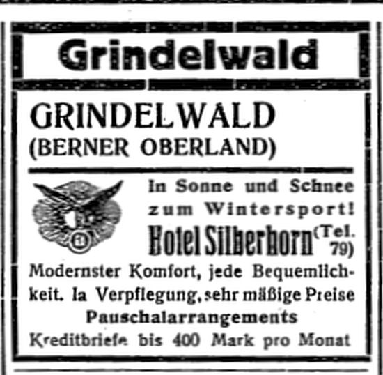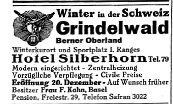 Anfragen bis dahin Hotel Silberhorn Grindelwald Frau F. Kahn."