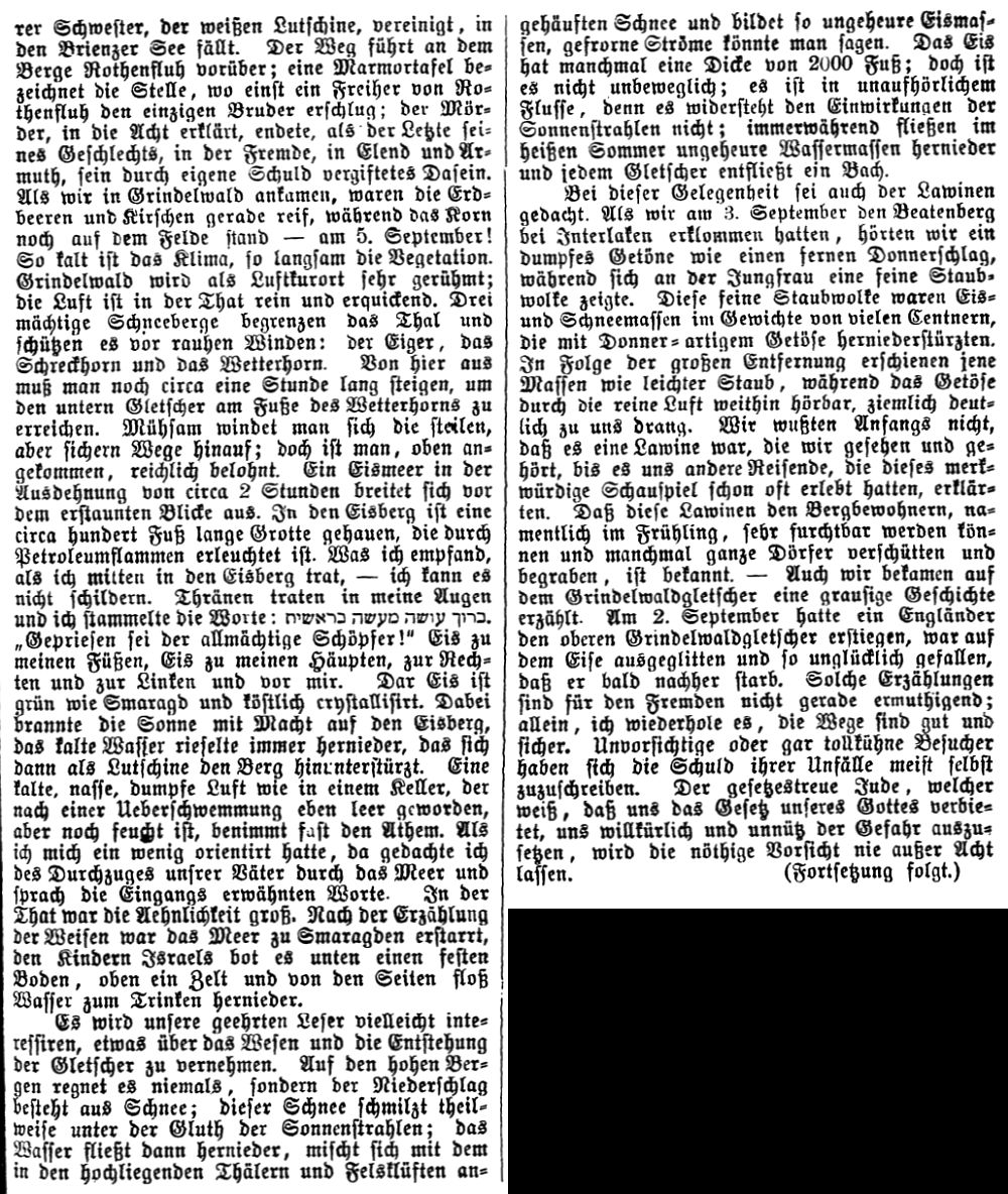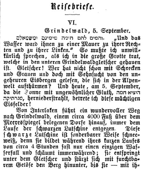 in "Der Israelit" vom 6. Oktober 1875: "Grindelwald, 5. September