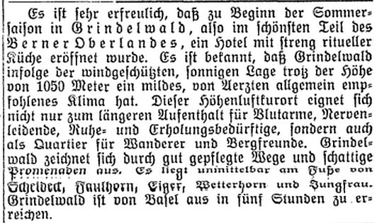 in "Der Israelit" vom 15. Juli 1926: " Grindelwald