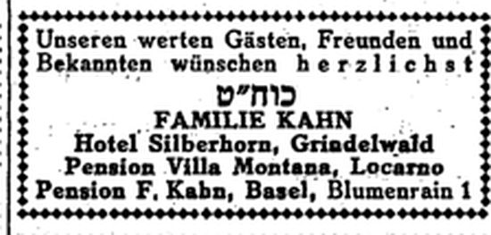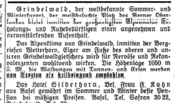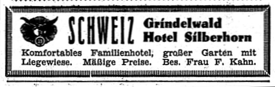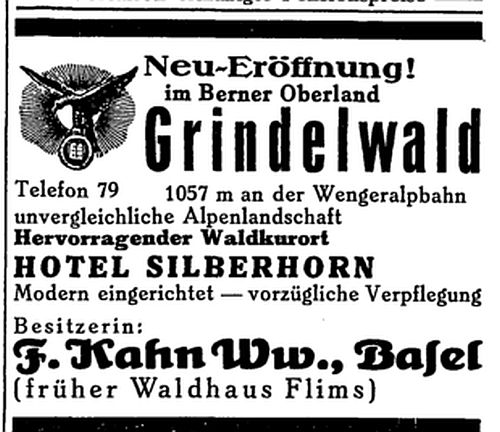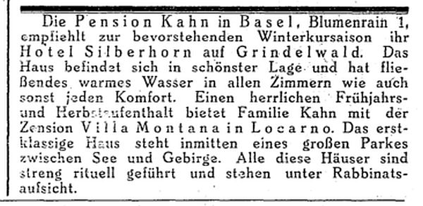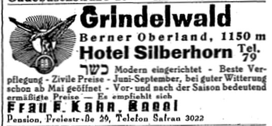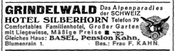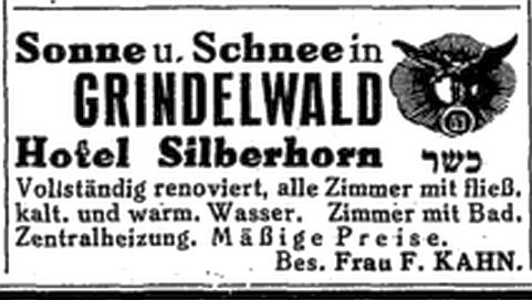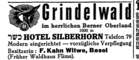 Seit 1928 betrieb Rosette Kahn ("Frau F. Kahn") neben dem Hotel in Grindelwald auch die Pension