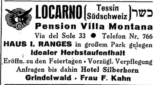 Anzeige in "Der Israelit" vom 9. August 1928: "Locarno (Tessin