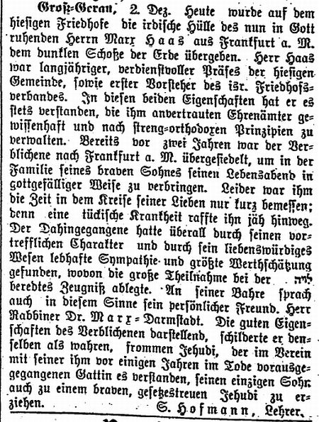 denen sie teilweise deportiert wurden). Vermutlich letzter jüdischer Lehrer