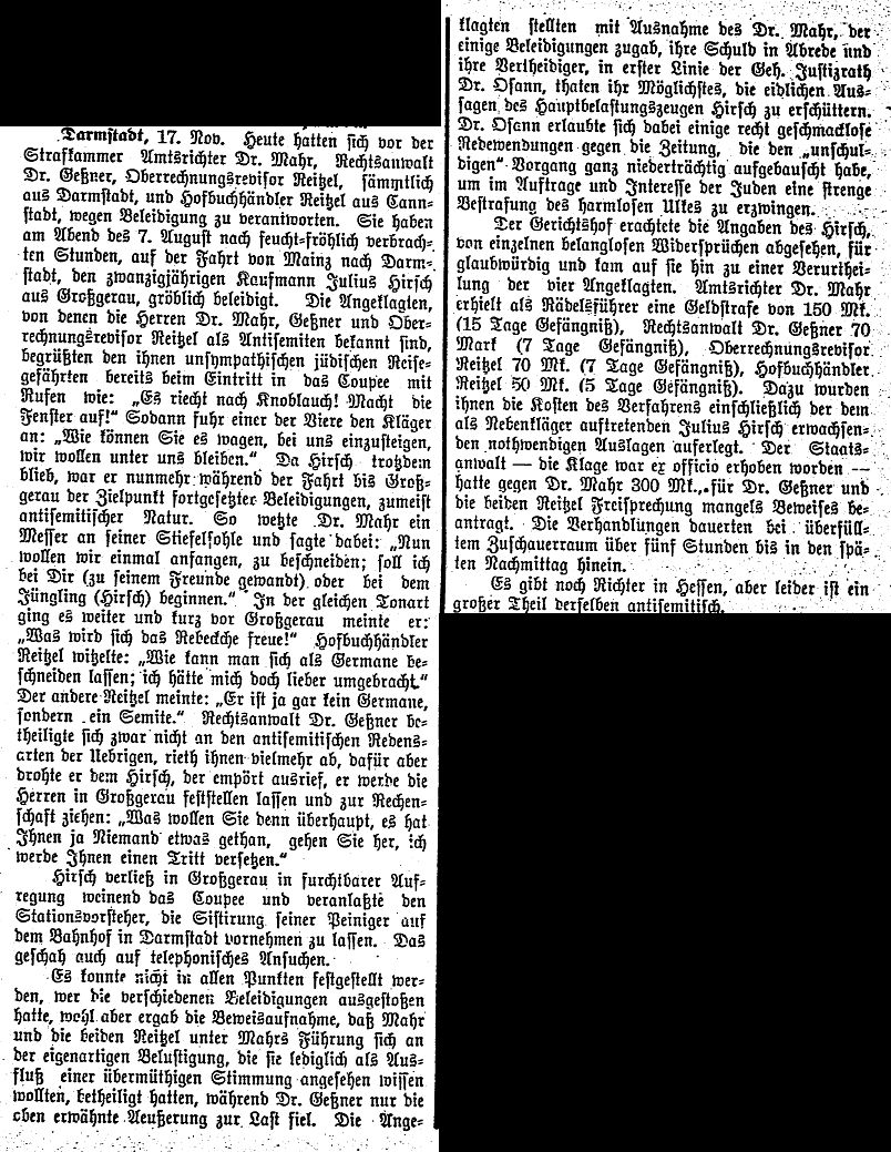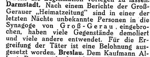 Von der Bergstraße über den Odenwald und Darmstadt bis Groß-Gerau brannten in jener unheilvollen Nacht 35 Synagogen, oder die Inneneinrichtung der Gotteshäuser wurde zertrümmert.