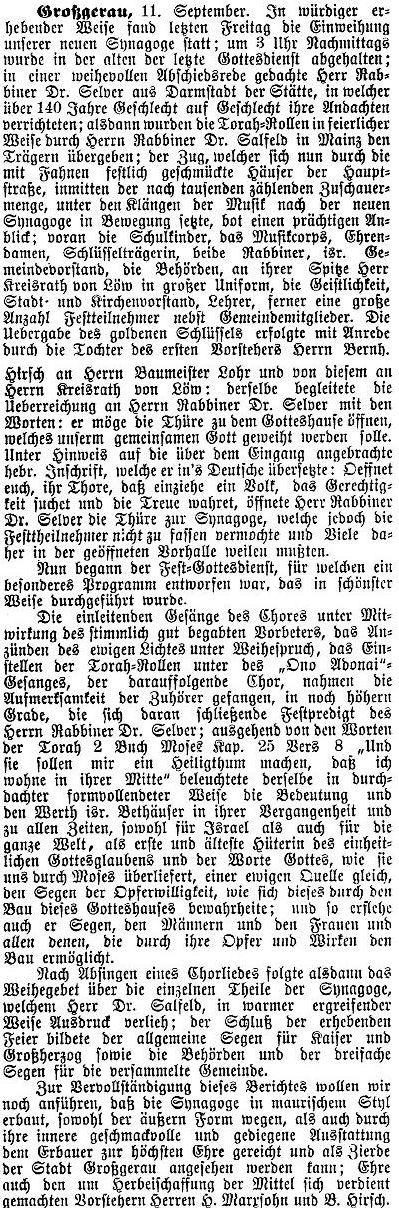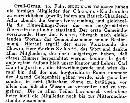 Hirsch und Jacob Gottschall. Als Kantor und Lehrer war Julius Rothschild