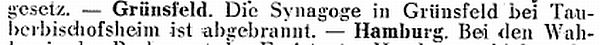 deportiert, von denen nur einer überlebt hatte. Einige Grünsfelder Juden