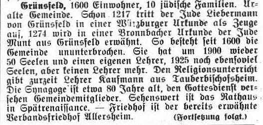 Grünsfeld geborenen und/oder längere Zeit am Ort