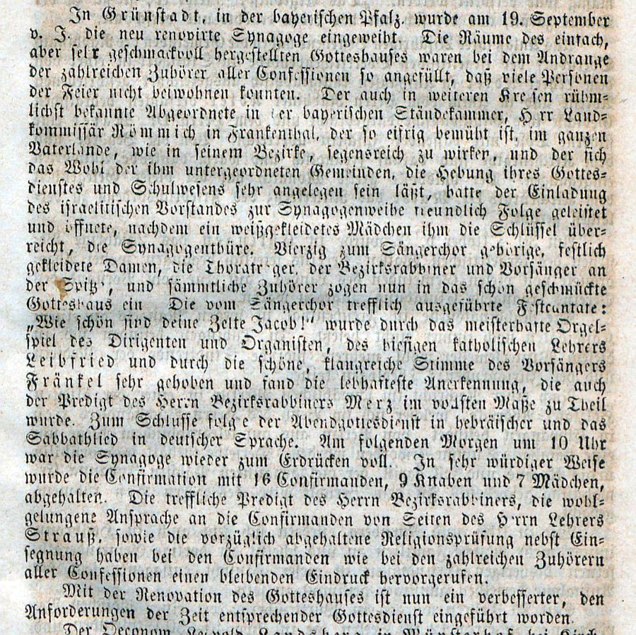 Grünstadt erschienen immer wieder Berichte in überregionalen jüdischen