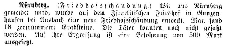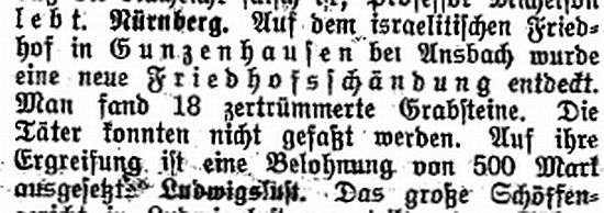 "Nürnberg. Auf dem israelitischen Friedhof in Gunzenhausen bei