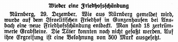 Januar 1930: "Wieder eine Friedhofschändung. Nürnberg, 29.