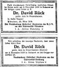 Traueranzeigen zum Tod des praktischen Arztes in Gunzenhausen Dr. David Rück