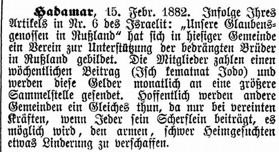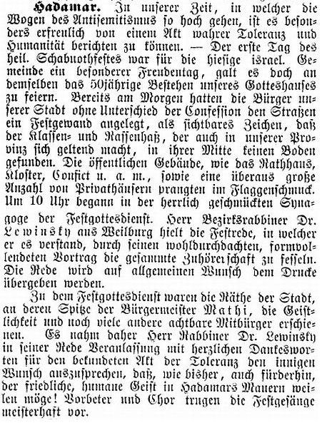 zumal der Ort Sitz eines Rabbiners war (siehe unten). Zu Hadamar zählten auch